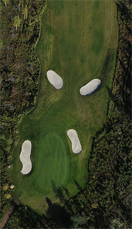 Objekt såsom utslagsplatser, greenkanter, bunkrar m.m. ritades upp från ortofotot. Från bilderna kan vi även med hjälp av fotogrammetrisk teknik få höjddata. Det fås i form av ett punktmoln som sedan kan göras om till 3D modeller, enstaka höjder, höjdkurvor m.m. Från punktmolnet genererade vi höjdkurvor med 20cm intervall för alla banor.